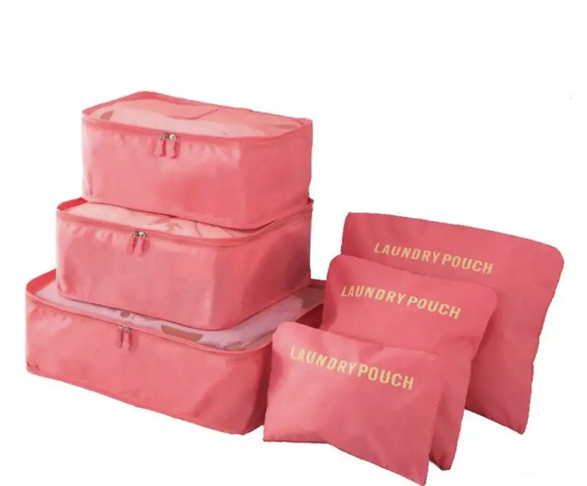 Optimiza cada rincón de tu equipaje con este conjunto de organizadores rosados. Su versatilidad te permite separar prendas, accesorios y objetos personales sin desorden. Fabricados con materiales resistentes al agua y de fácil limpieza, cuidan la ropa y maximizan el espacio disponible en la valija. Su diseño elegante y funcional despierta confianza y hace del orden algo esperable, no un sacrificio. Todo viajero smart lo necesita en su kit.